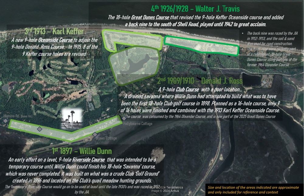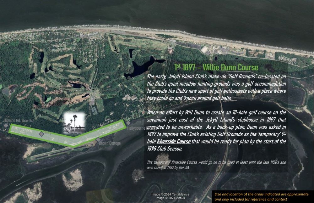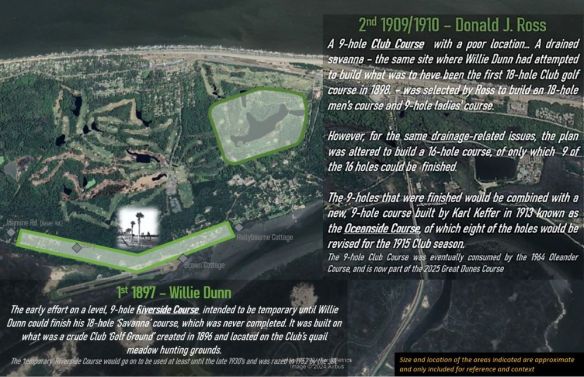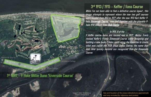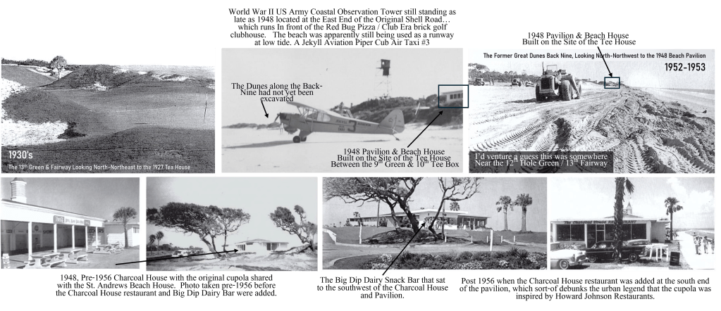In doing-so, as with this overview image, I try to make the point that the “center of the world” on Jekyll Island was quite different than it is today. In the Club Era, “Stable Road” crossed what is now Beachview Drive 450 feet to the North of the current “Stable Road”, and a half-mile North of the round-about at the entrance to the current Beach Village. In fact, during the Club Era what is now Beach Village would have been where the 11th, 12th and 16th holes of the 1928 Oceanside / Great Dunesgolf course ‘back-nine’ were located.