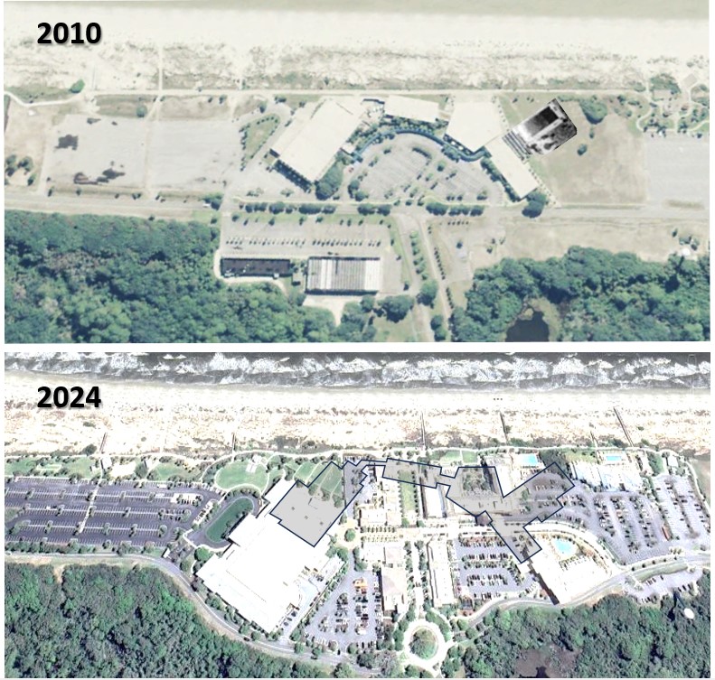 The Marriott dual-branded Courtyard & Residence Inn opened in 2021 was a direct replacement for the 1961 Holiday Inn’s footprint after it was razed in 2005, and two of the other five motel sites were converted to the previously mentioned Ocean Oaks and Seaside Resort single family home communities.